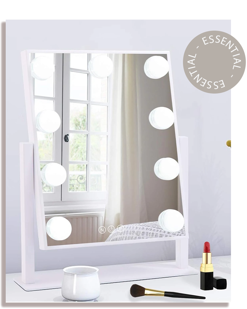 Achieve picture-perfect makeup with bright LED lighting, adjustable brightness, and rotating angles. A chic, Hollywood-style essential that brings pro-level glam to your vanity.